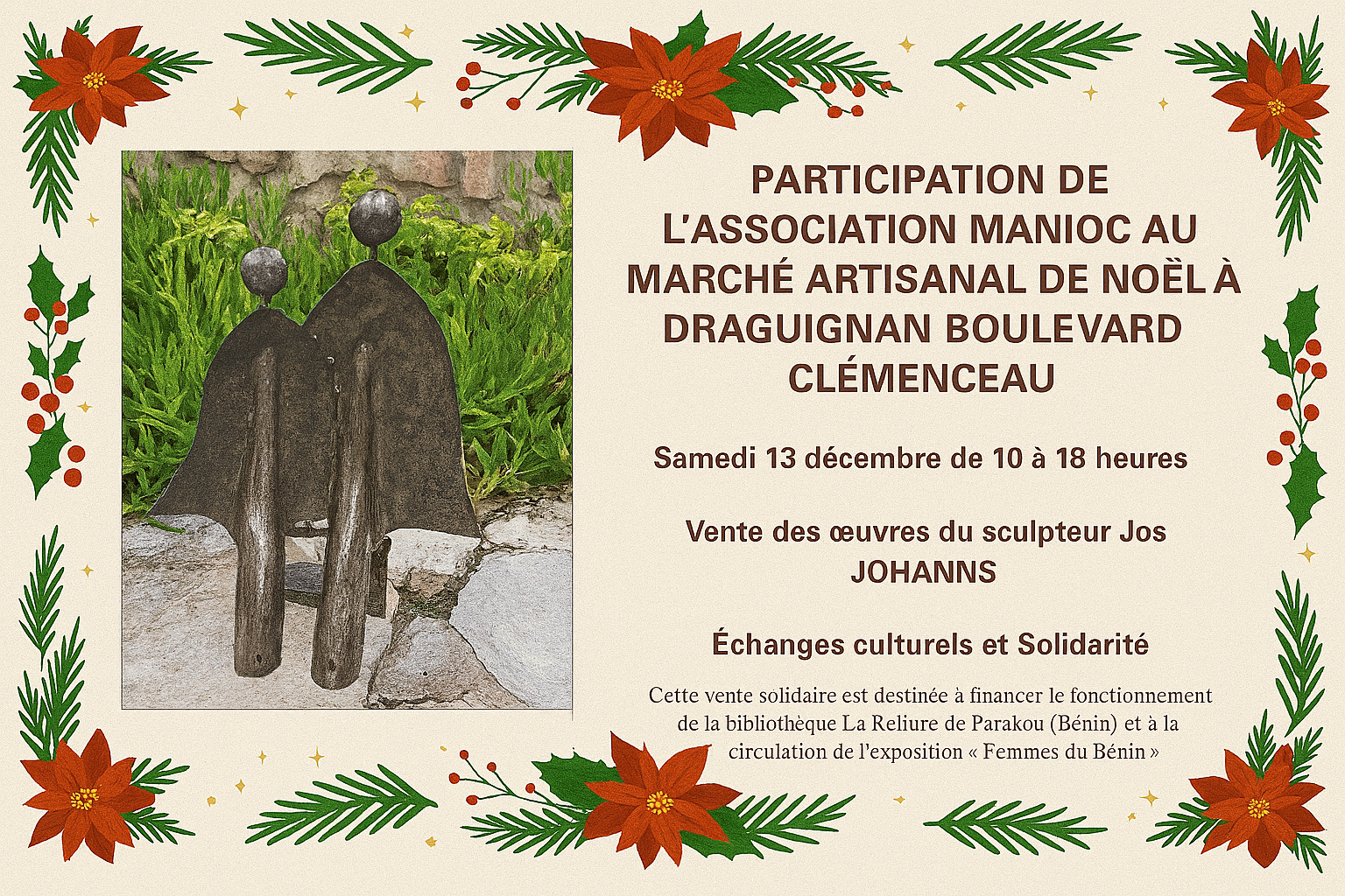 L’association MANIOC a été créée en avril 2004 par des personnes attachées au développement d’échanges culturels avec le continent africain et plus particulièrement le Bénin. Elle a pour but d’établir des liens entre des populations ayant des spécificités socioculturelles à partager en vue d’une meilleure compréhension, ce qui favorise à plus long terme, une meilleure entraide sur la base d’une réciprocité. Afin de réaliser cet objectif, l’association accompagne les échanges entre les lycéens de Mathieu Bouké à Parakou et de Jean Moulin à Draguignan et initie des expositions pour faire connaître la culture béninoise en Dracénie.